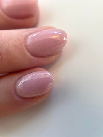 We beginnen met een droge manicure. We verzorgen de nagels, we vijlen de nagels in de gewenste vorm, we verwijderen de nagelriemen en velletjes met een frees en polijsten de nagels. We zetten een prep, bond en base. Hierna gaan we de natuurlijke nagel behandelen zonder nagelverlening. Dit doen we aan de hand van een gel die ontworpen is om de natuurlijke nagel te versterken.